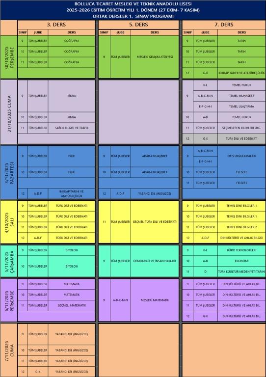 2025-2026 Eğitim Öğretim Yılı 1. Ortak Sınavlar Takvimini indirmek için TIKLAYIN.